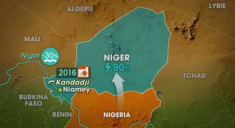 Le barrage de Kandadji, situé à environ 180 kilomètre au nord-ouest de Niamey, permettra l’injection 130 MW dans le réseau afin de résoudre le grave déficit énergétique qui sombre le pays.