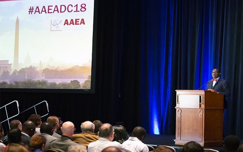 Akinwumi Adesina, Président du Groupe de la Banque africaine de développement (Bad) a profité d’une adresse aux assemblées annuelles 2018 de l’Association pour l’agriculture et l’économie appliquée (Aaea), le 5 août 2018 à Washington pour lancer un appel urgent visant à transférer aux agriculteurs africains les nouvelles technologies susceptibles de transformer la production agricole du continent.
