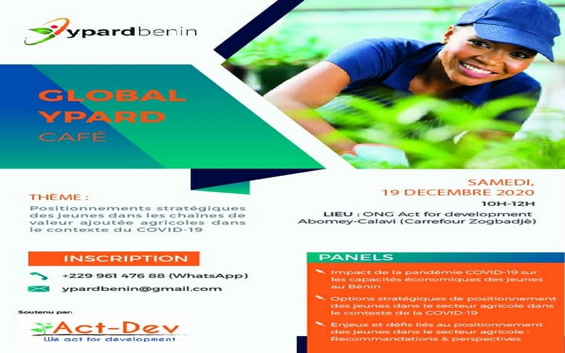 Ainsi, l’initiative du YPARD Café au Bénin consiste à organiser, ce 19 décembre 2020, au siège social de l’ONG Act for development, un atelier participatif incluant les organisations et entreprises pérennes de jeunes, afin de partager les connaissances et échanger autour des principaux positionnements stratégiques disponibles pour les jeunes dans les chaînes de valeur ajoutée agricoles dans le contexte du Covid-19, ajoute ypard.net.